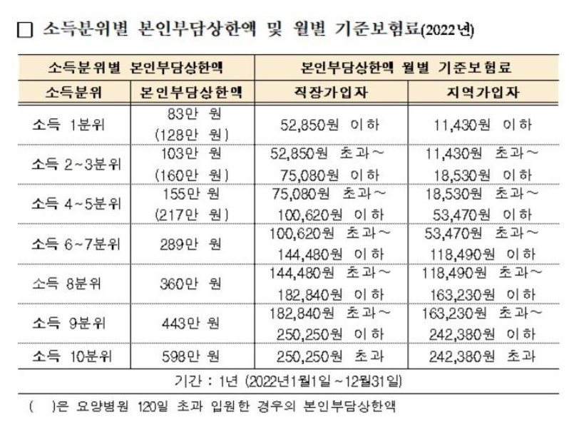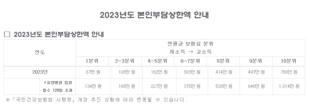소득하위 50퍼센트는 2023년부터 자기부담금 상한선이 4만원~10만원씩 크게 올라갑니다.
