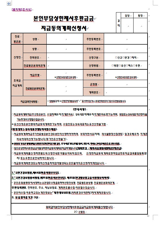 - 본인부담상한액 초과금 지급동의계좌신청서